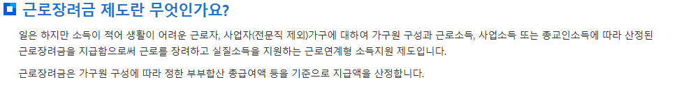 일하는 저소득 가구에 실질적인 힘을 보태기 위한 정부의 핵심 제도입니다.